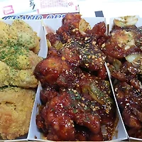 ↑ 양념치킨은 어떨까요. 생긴 거를 보여드리기 위해 들어봤는데 양념이 잘 발라져있네요. 근데 굳이 말씀드리자면 그냥 일반적인 옛날 양념통닭 같은 맛입니다. 특별할 거 없고 양념이 개성이 있는 것도 아니고 그저 그렇습니다.