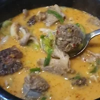 ↑ 그러고 난 뒤, 부대찌개용 양념 다대기를 넣었습니다. 이게 부대찌개의 맛을 좌우하겠죠. 이정도 건더기면 두명이서는 좀 모자라고 혼자는 살짝 많은 양이겠네요.