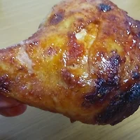 ↑ 이번엔 옆으로 (가로) 길게 나오도록 해서 사진을 찍어봤는데요 두께도 자세히 보실 수 있을 겁니다. 꽤 두껍죠. 기름은 많지는 안하고 노릇노릇하게 살 익은 걸로 보입니다. 푸석푸석한 살코기 느낌이 많이 드네요.